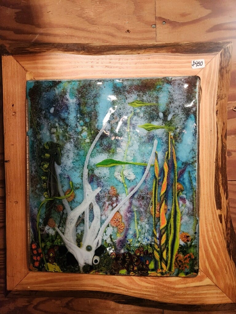 Below are just a few images of the melt glass I was able to frame, however, due to my lack of photo editing software, I can only offer these lame raw images.