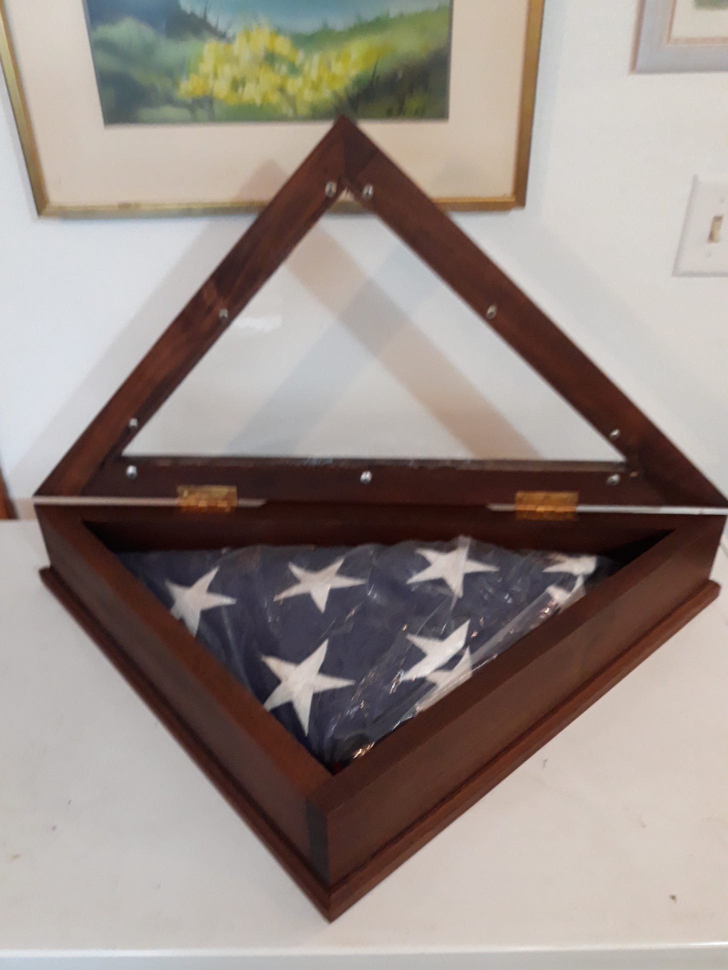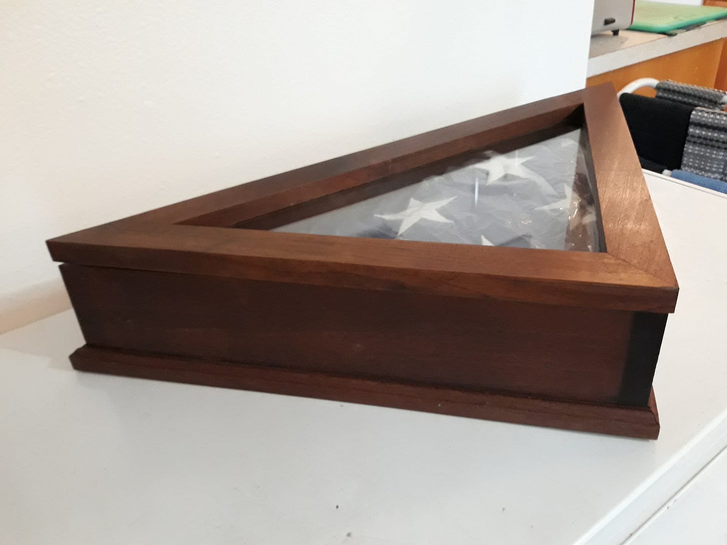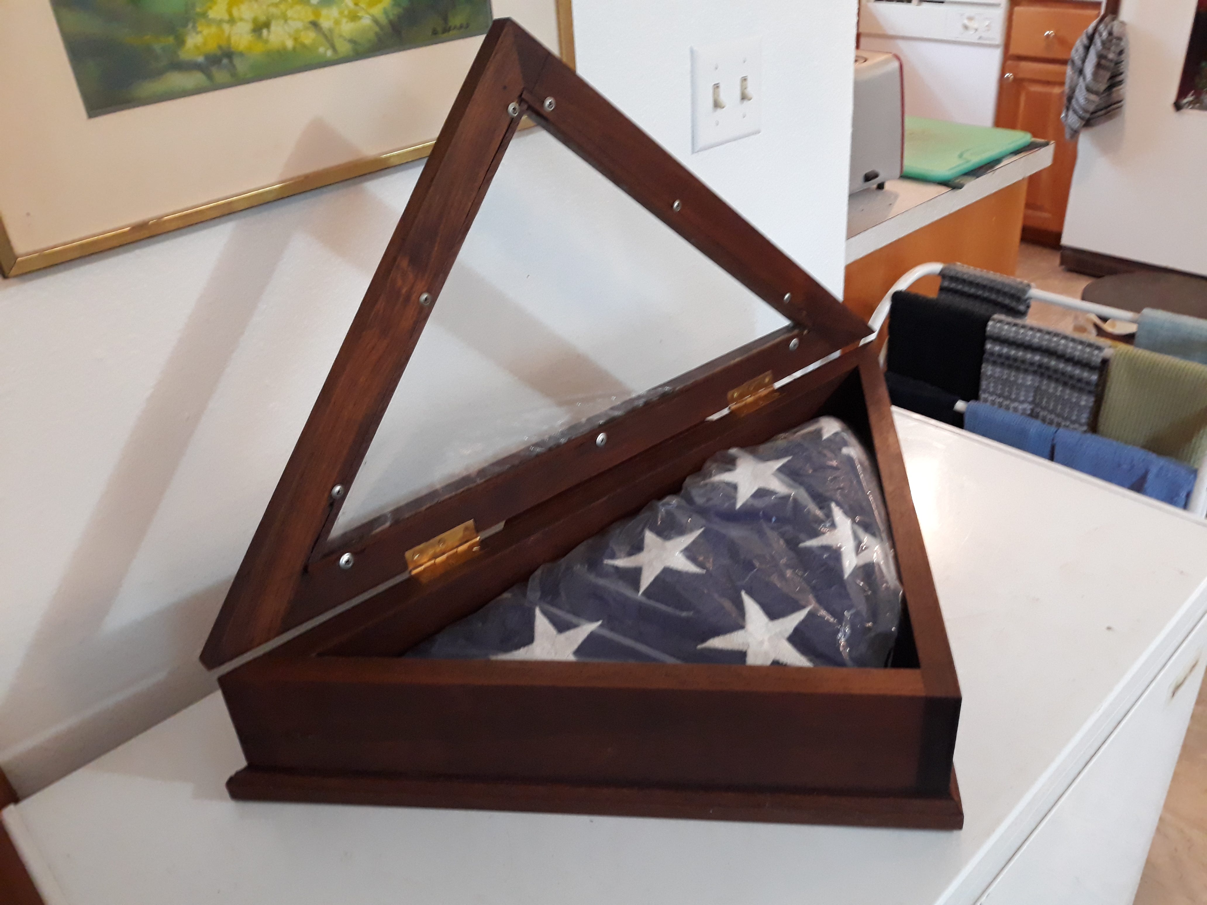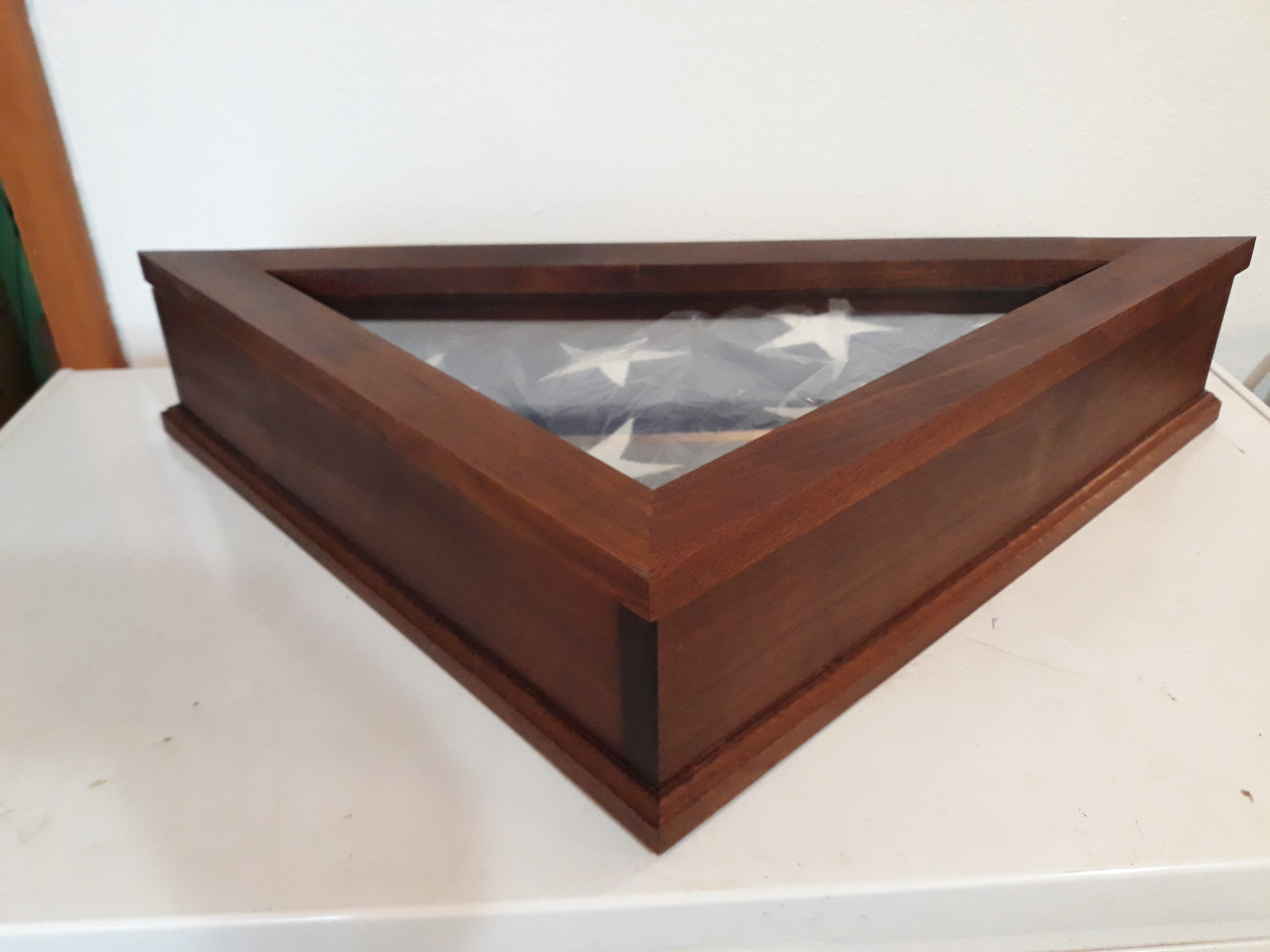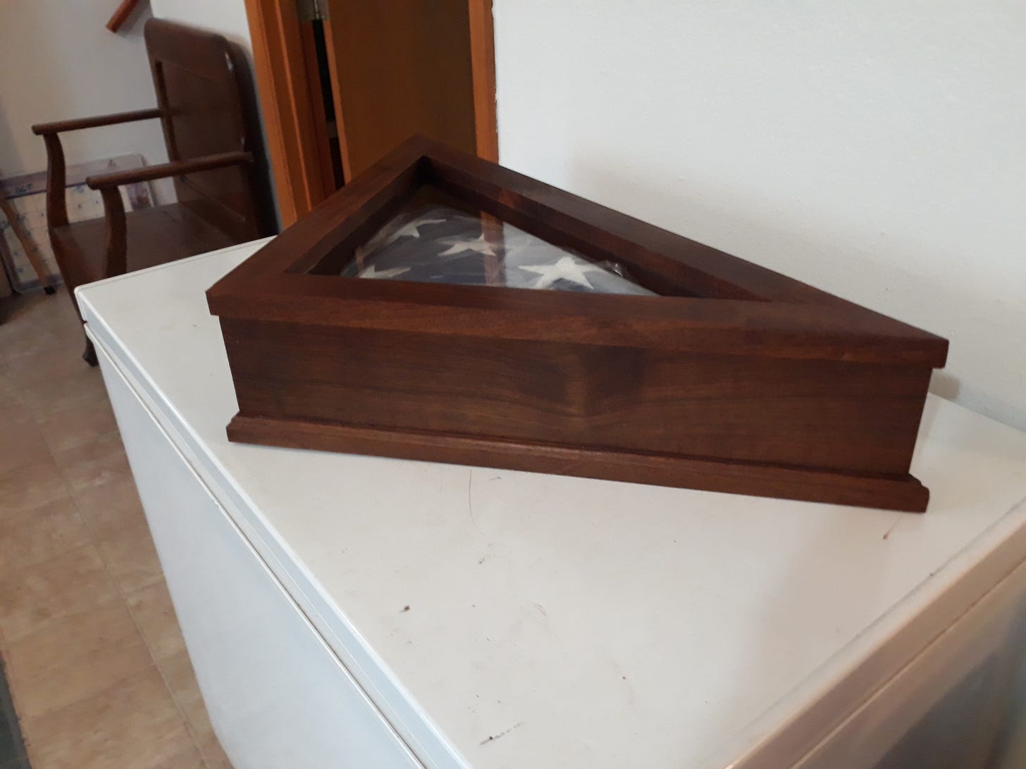 Sometime back, the father of a young man passed away, leaving him heartbroken and confused. As a special needs boy, the devastation was even more concerning as he requires extra compassion as he can be overcome by the harsh world around him. I say all that to say this; his father, a veteran, was buried with full military honors, and at the funeral, his son, the nephew, was presented The Colors. This flag is now the only link that remains between him and his now departed dad. So, when I was asked to make a case for his flag… how could I not? In fact, I was quite honored! There are commercially made ones available, but they didn’t seem to have the same quality. His aunt, Rachel, asked that it be made of a dark, preferably hard wood such as walnut. Well, ask no more, I got you covered.