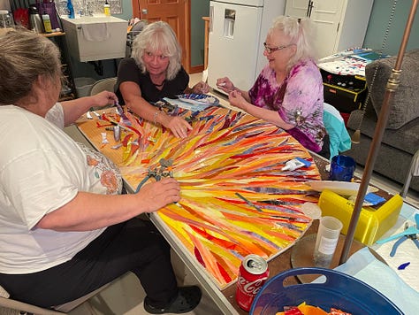 Your beach mosaic tale, for the most part was true, however, It was Kim’s daughter who took the picture of us posing in front of the almost finished mosaic. Christi’s in other pictures during the process of putting it together. And it was also Kim’s daughter who created the lobster.